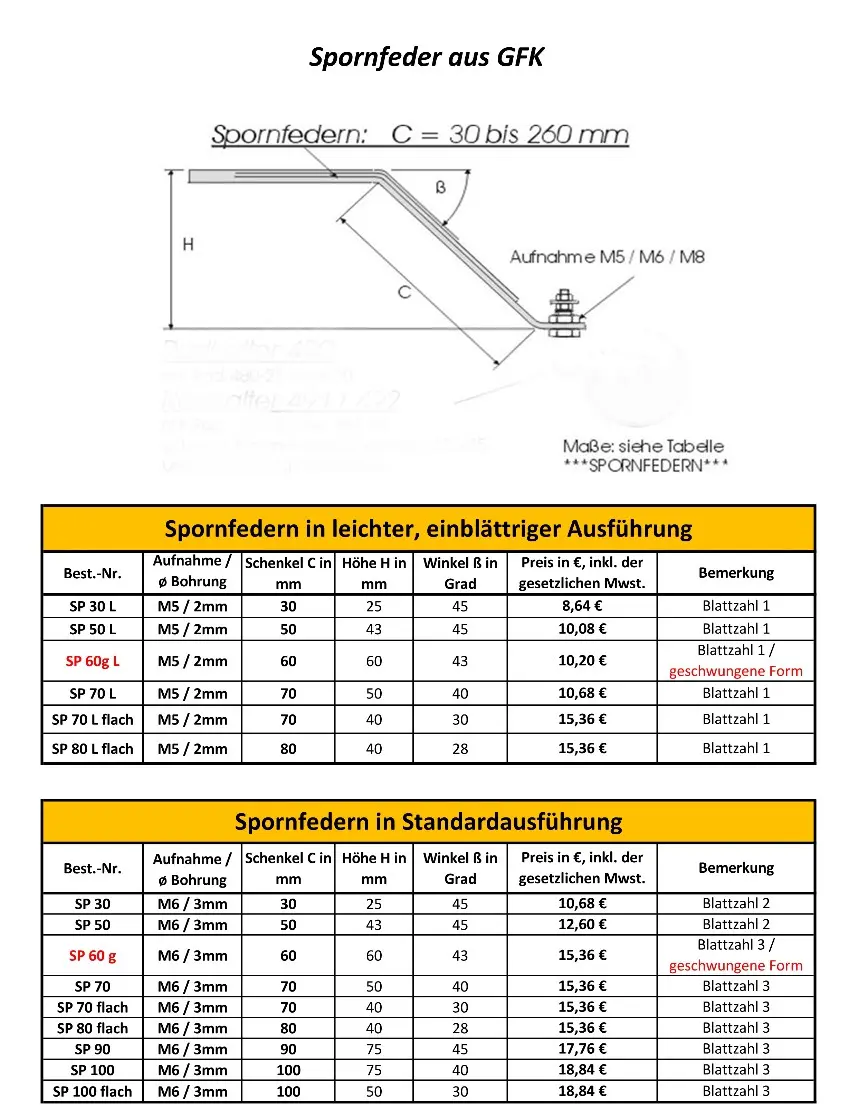 Spornfedern "Standard Ausführung"